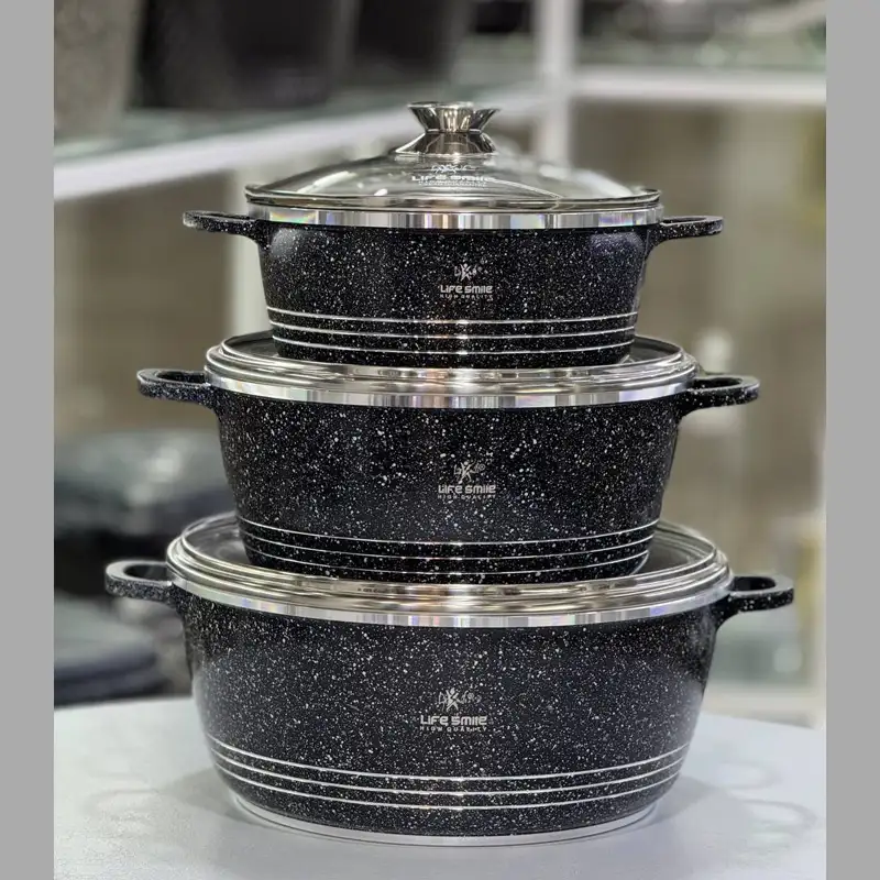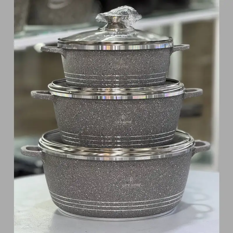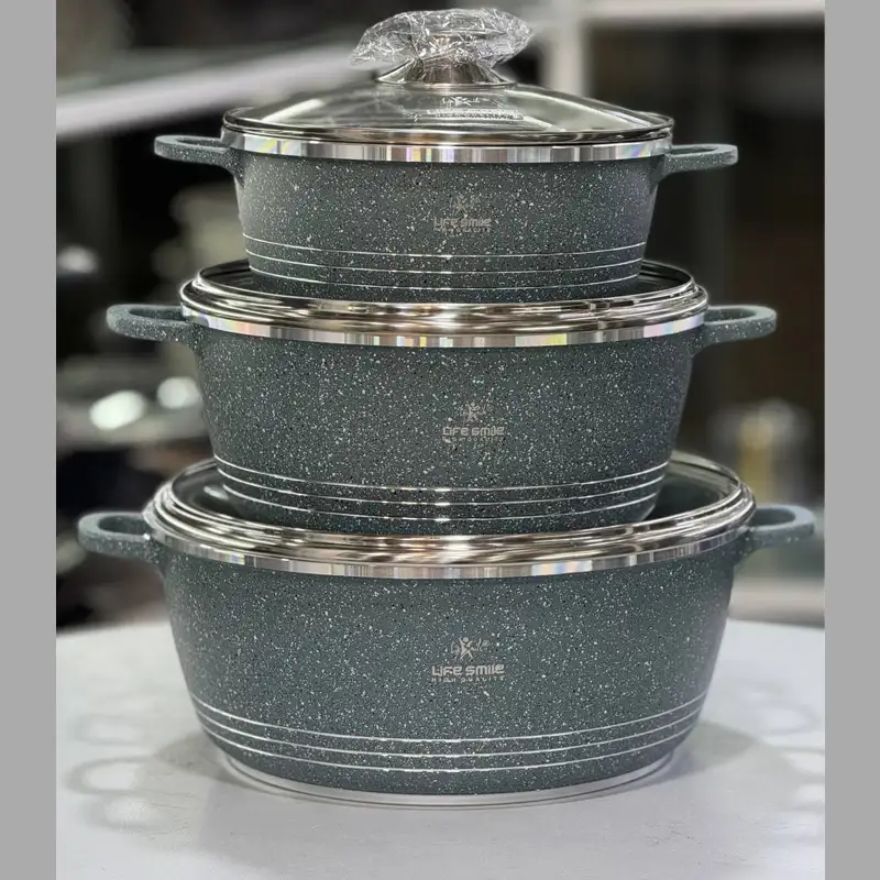 خرید و قیمت سرویس قابلمه 6 پارچ لایف اسمایل گرانیت سایز 20 24 28 مدل Lifep7