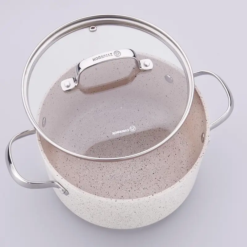 گنجایش قابلمه کوتاه کرکماز مدل GRANITA A1264 با حجم 4 لیتر، فضای کافی برای پخت انواع خوراک های خانگی فراهم می کند. تصور کنید یک قابلمه گرانیتی کرم روی اجاق قرار گرفته و بخار آرام از آن بلند می شود، در حالی که غذا با حرارت یکنواخت پخته می شود.